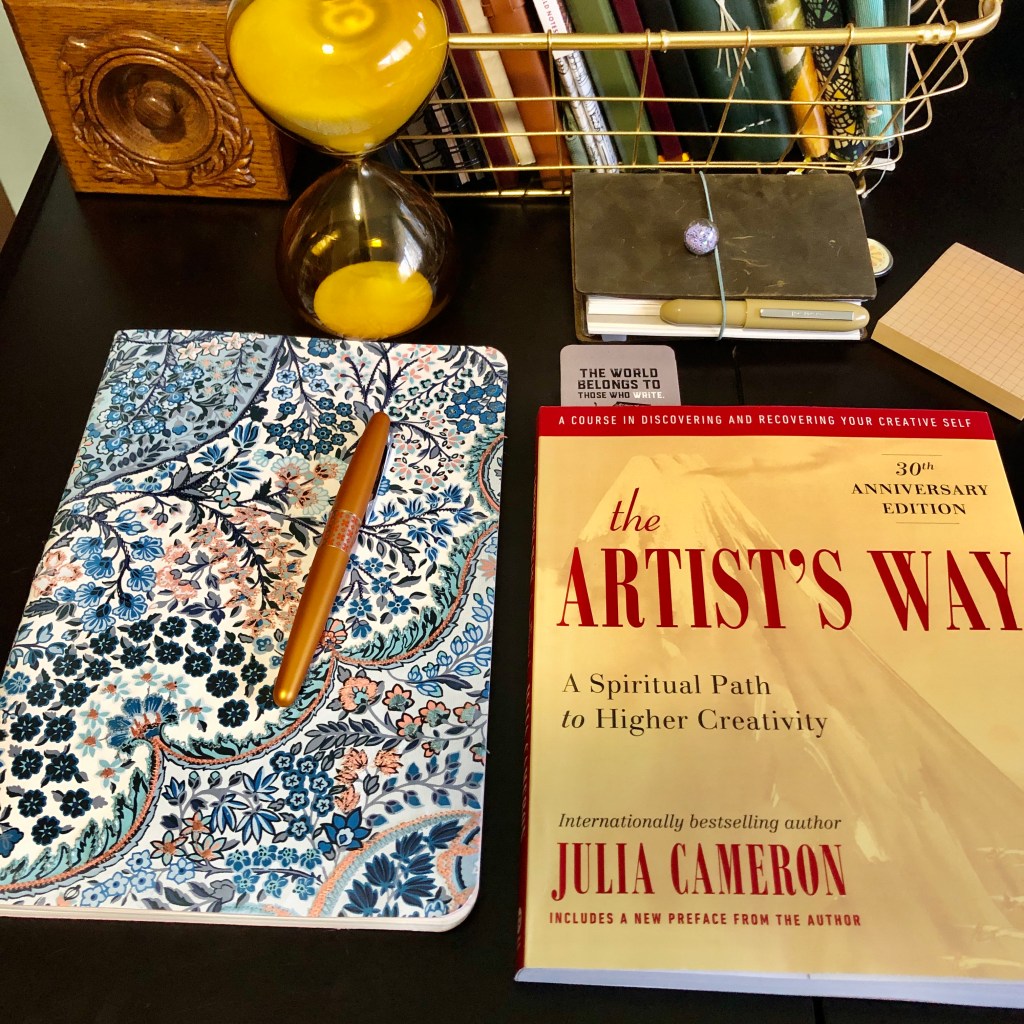 Julia Cameron’s book The Artist’s Way: A Spiritual Path to Higher Creativity was recommended to me by a writer friend when it was first published in the early nineties. At the time she had teenagers and I had toddlers and I remember thinking, I barely have a thought that’s my own! How can I possibly fill three notebook pages every morning with whatever is going on inside my head? But I’ve always liked a challenge and I wanted to be more creative and less task-driven, so I borrowed my friend’s well-used copy of the book. Essentially it gives you exercises and a long pep talk to help you overcome the beliefs and fears that can inhibit the process in whatever creative medium you’re pursuing. Sounds simple enough, doesn’t it? I gave it my best shot for about a week, until the pages began to fill up with to-do lists and doodles, Dear Diary-like entries, and maybe a rant or two. It was the right book, it just wasn’t the right time for me to fully engage with it. When the thirtieth anniversary edition of this same book recently found its way back into my hands, I casually flipped it open to read the inside flap and the first sentence I read is the one that’s quoted above. Then I thought, I need this right now.